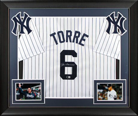 Joe Torre Authentic Signed White Pinstripe Pro Style Framed Jersey BAS Witnessed