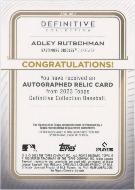 Adley Rutschman Autographed Baltimore Orioles 2023 Topps Definitive Collection Relic Card 46/50
