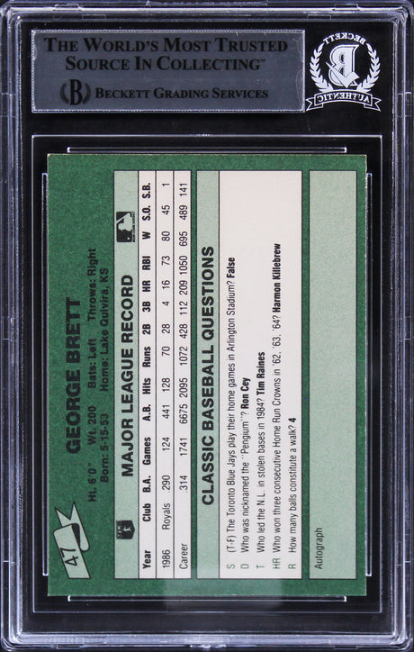 Royals George Brett Authentic Signed 1987 Classic Game #47 Card BAS Slabbed