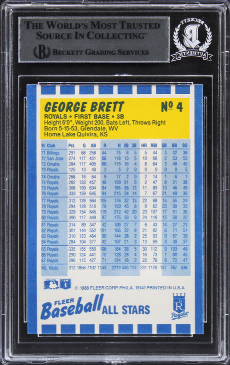 Royals George Brett Signed 1988 Fleer Baseball All-Stars #4 Card BAS Slabbed