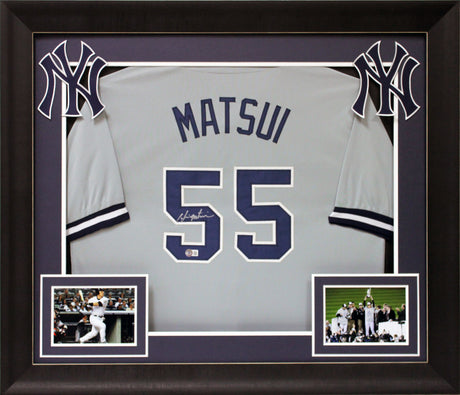 Hideki Matsui Authentic Signed Grey Pro Style Framed Jersey BAS Witnessed