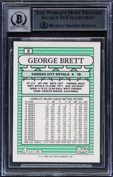 Royals George Brett Signed 1990 Topps AMES All-Stars #2 Card Auto 10 BAS Slabbed