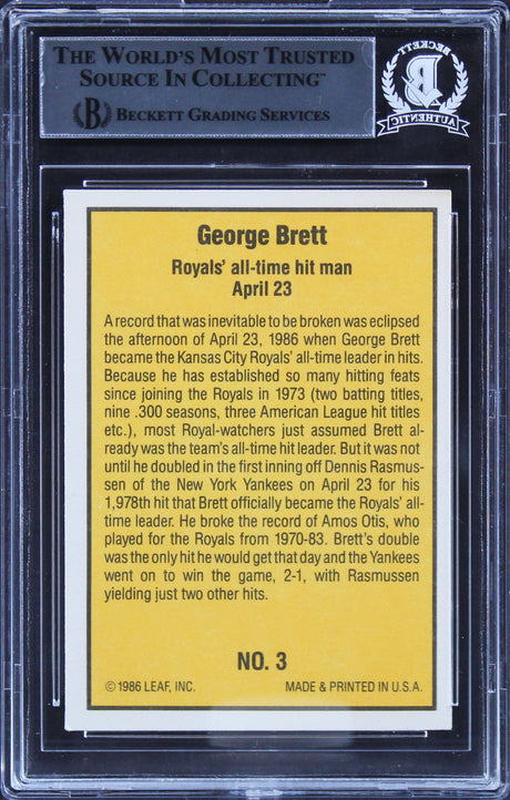 Royals George Brett Authentic Signed 1986 Donruss Highlights #3 Card BAS Slab