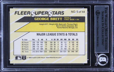 Royals George Brett Authentic Signed 1989 Fleer Superstars #5 Card BAS Slabbed