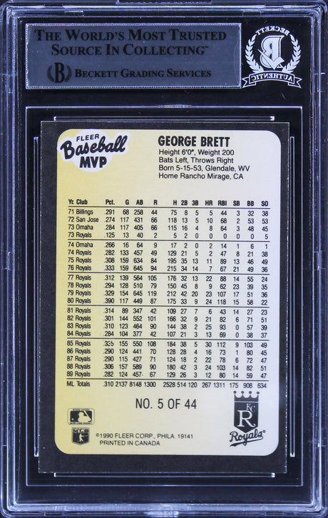 Royals George Brett Authentic Signed 1990 Fleer Baseball MVP's #5 Card BAS Slab