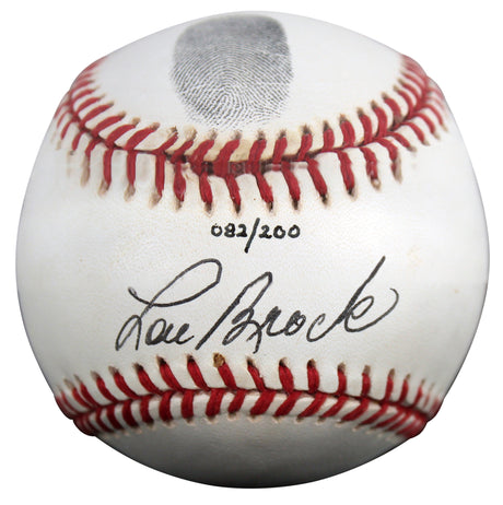 Cardinals Lou Brock Signed Thumbprint Baseball LE #'d/200 w/ Display Case BAS