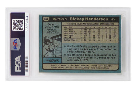 Rickey Henderson (Oakland A's) 1980 Topps Baseball #482 RC Rookie Card - PSA 9 MINT (B)