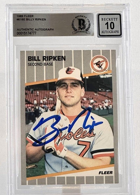 1989 Fleer #616E Billy Ripken Auto Baltimore Orioles BGS Autograph 10
