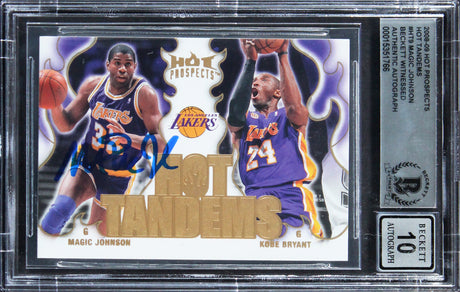 Lakers Magic Johnson Signed 2008 Hot Tandems #HT9 Card Auto 10! BAS Slabbed
