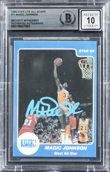 Very low stock (1 unit)$159Unit price /UnavailableMagic Johnson Signed 1985 Star Lite All-Stars #11 Card Auto Gem 10! BAS Slabbed