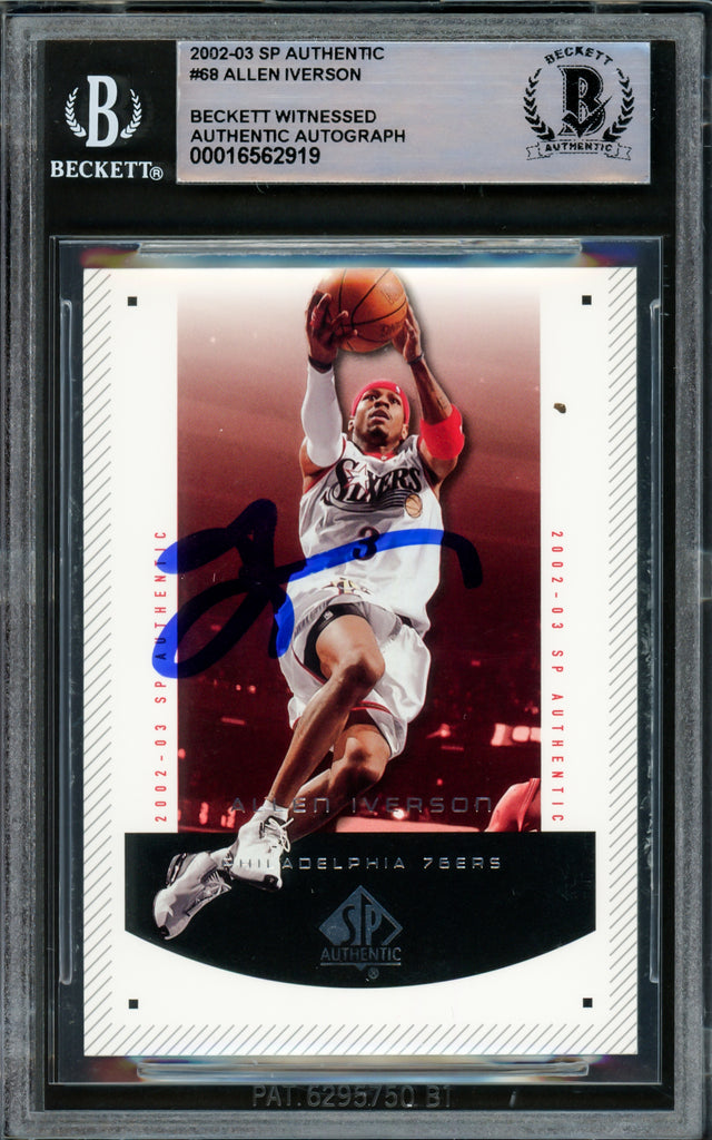 Allen Iverson Autographed 2002-03 SP Authentic Card #68 Philadelphia 76ers Beckett BAS Witnessed #16562919
