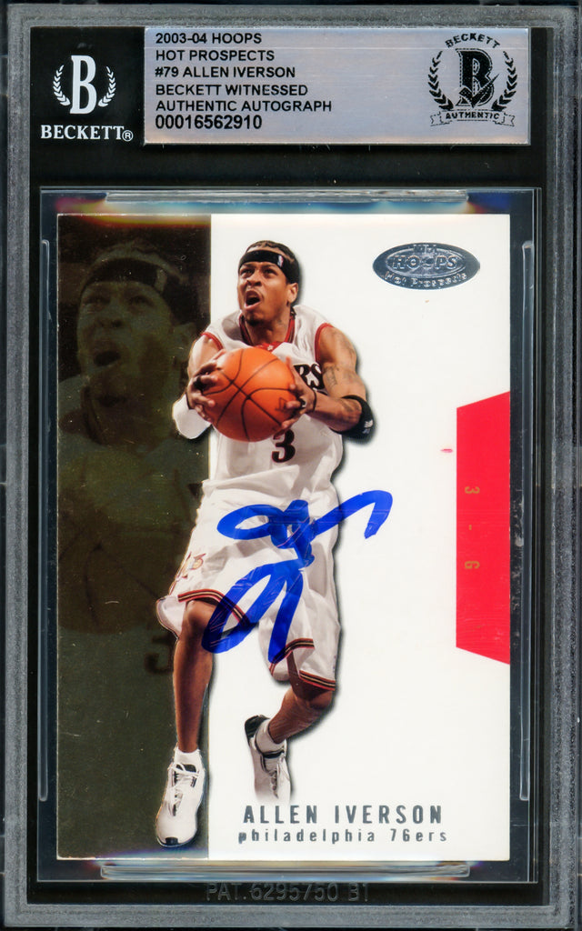 Allen Iverson Autographed 2003-04 Hoops Hot Prospects Card #79 Philadelphia 76ers Beckett BAS Witnessed #16562910