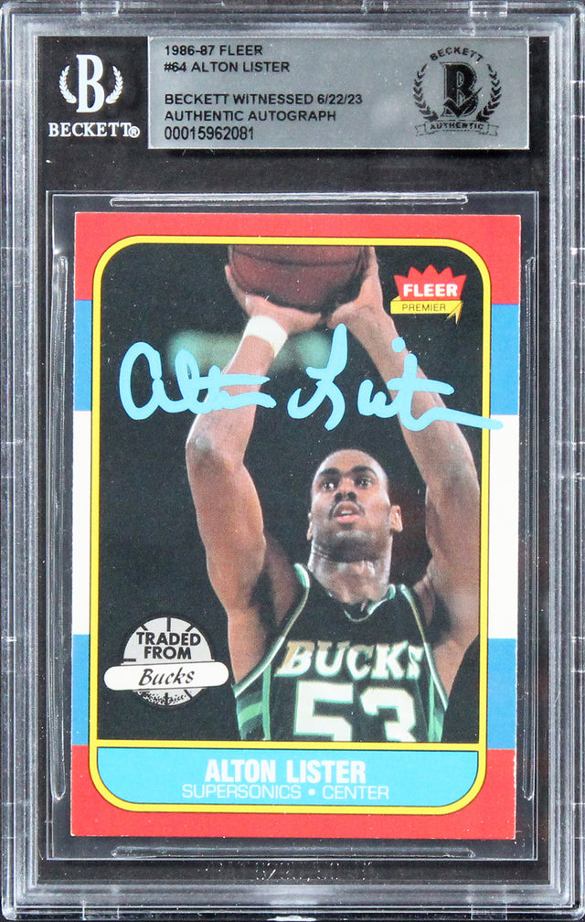 Bucks Alton Lister Authentic Signed 1986 Fleer #64 Card BAS Slabbed Rare!