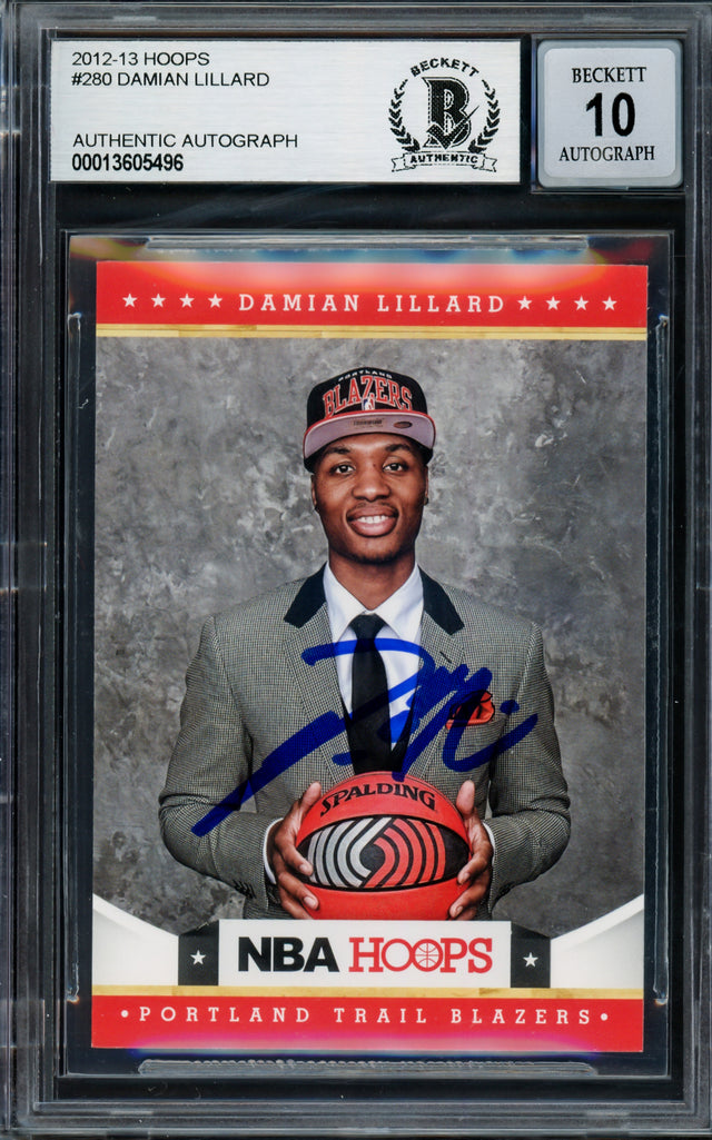 Damian Lillard Autographed 2012-13 Panini Hoops Rookie Card #280 Portland Trail Blazers Auto Grade Gem Mint 10 Beckett BAS #13605496