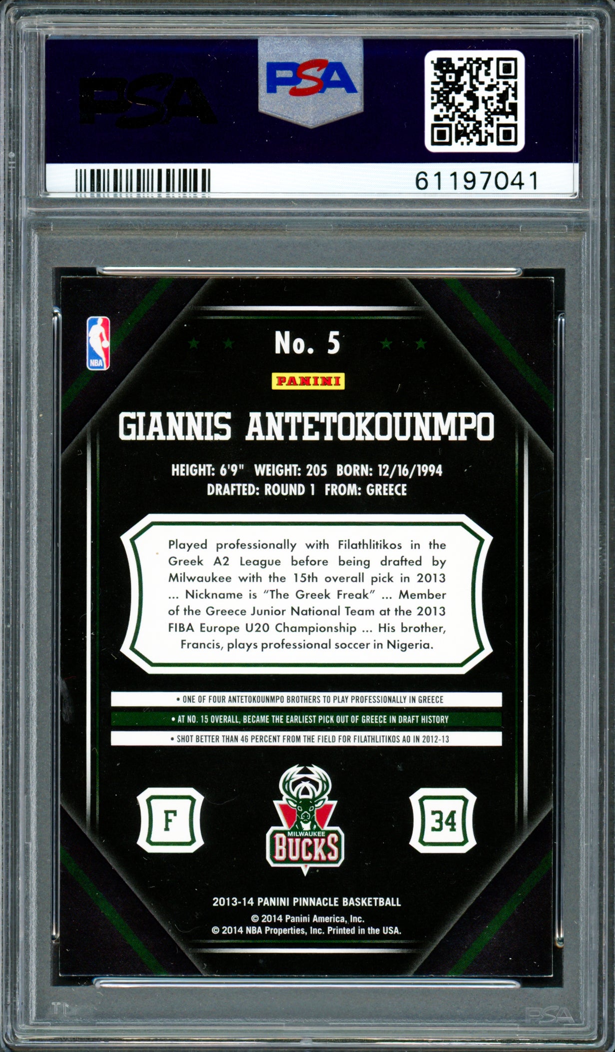 Giannis Antetokounmpo Autographed 2013 Panini Pinnacle Rookie Card #5 Milwaukee Bucks PSA 8 Auto Grade Mint 9 PSA/DNA Stock #261999