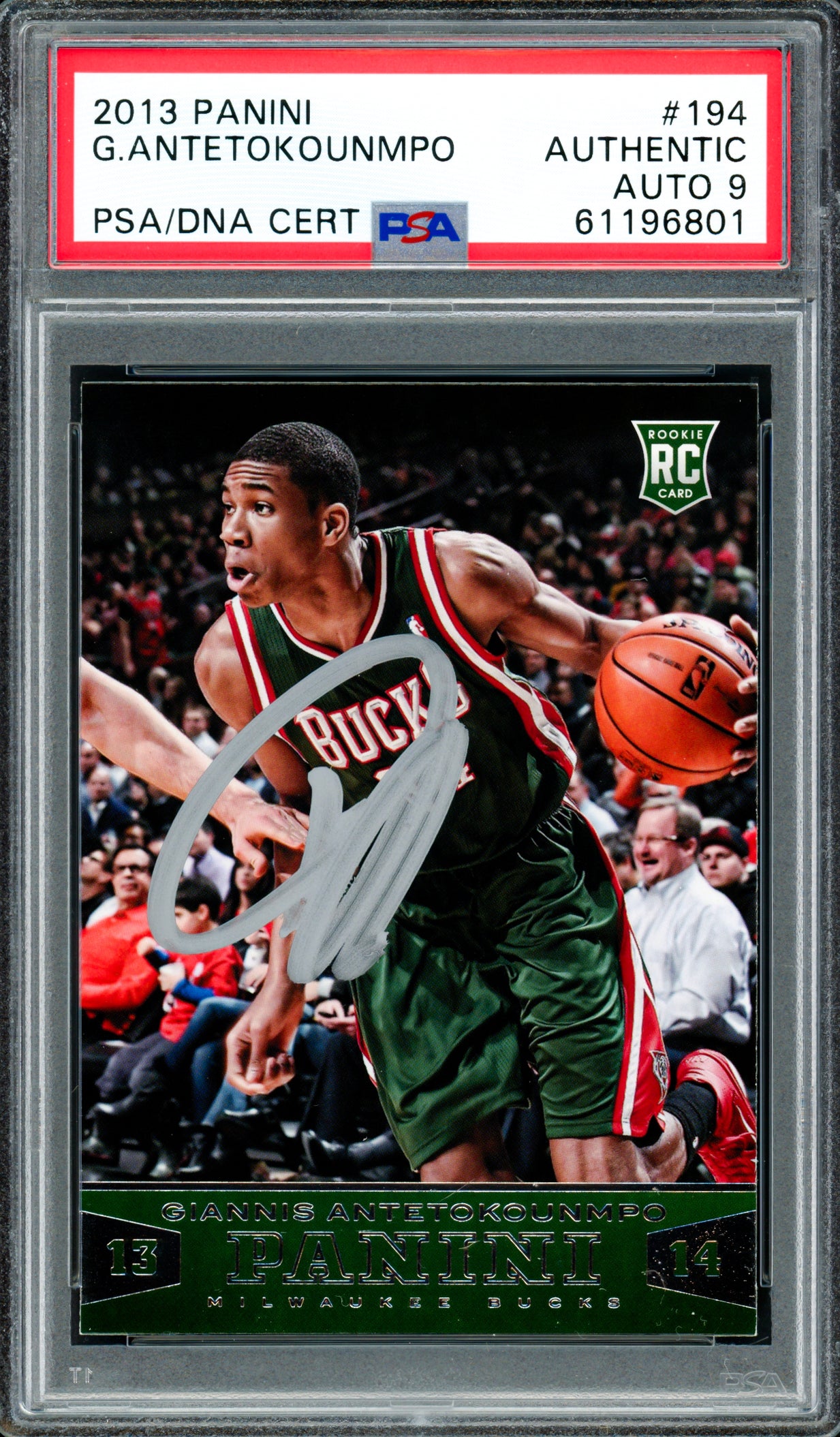 - Item: 2013 Panini Rookie Card #194 (Milwaukee Bucks) — hand-signed; PSA/DNA Auto Grade Mint 9; encapsulated; Stock #261997