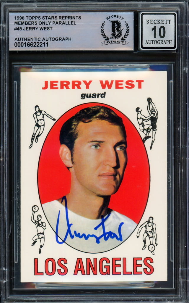 Jerry West Autographed 1996 Topps Stars Reprints Members Only Parallel Card #48 Card Los Angeles Lakers Auto Grade Gem Mint 10 Beckett BAS Stock #235074