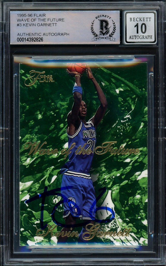 Kevin Garnett Autographed 1995-96 Fleer Flair Wave of the Future Rookie Card #3 Minnesota Timberwolves Auto Grade Gem Mint 10 Beckett BAS #14392826