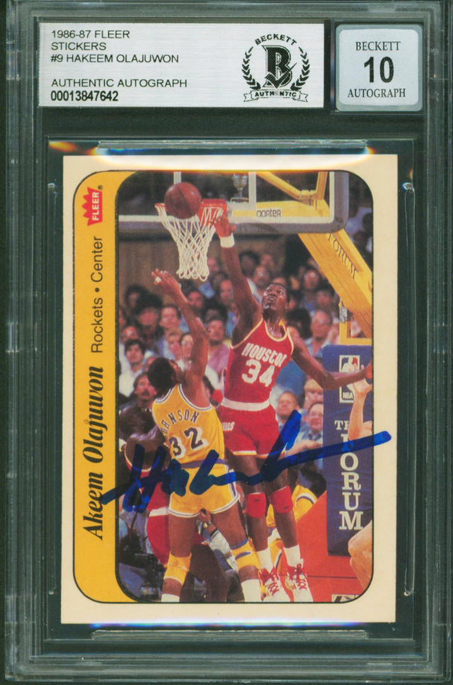 Rockets Hakeem Olajuwon Signed 1986 Fleer Stickers #9 Card Auto 10! BAS Slabbed is backordered and will ship as soon as it is back in stock.