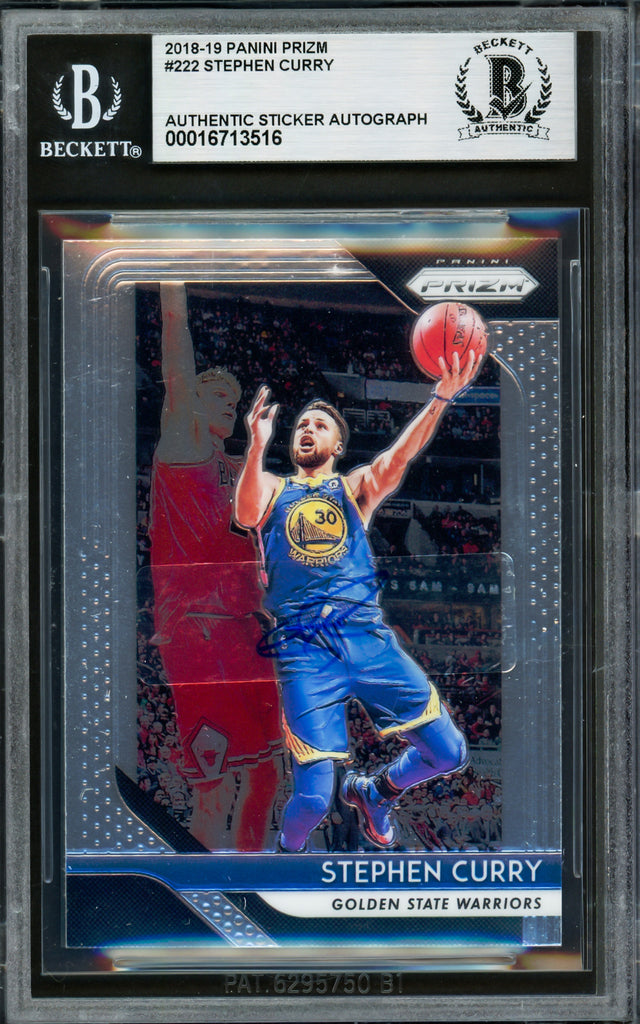 Own a piece of basketball history with this 2018-19 Panini Prizm Card #222, personally hand-signed by Stephen Curry. This rare collectible features Curry’s authenticated autograph on a sticker placed on the card, making it a must-have for Golden State Warriors fans and serious memorabilia collectors. Certified by Beckett Authentication Services (BAS), this card comes encapsulated in a tamper-proof holder, ensuring its authenticity and long-term preservation.