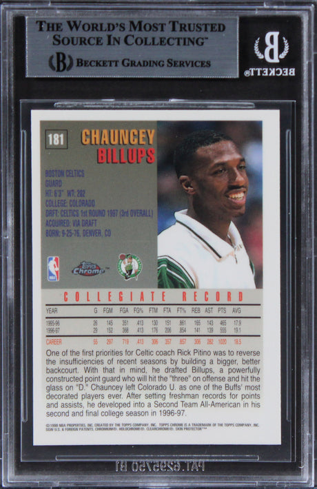 Celtics Chauncey Billups Authentic Signed 1997 Topps Chrome #181 Card BAS Slab