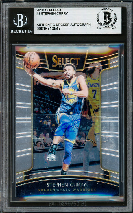 Stephen Curry Autographed 2018-19 Select Card #1 Golden State Warriors Beckett BAS Stock #227998