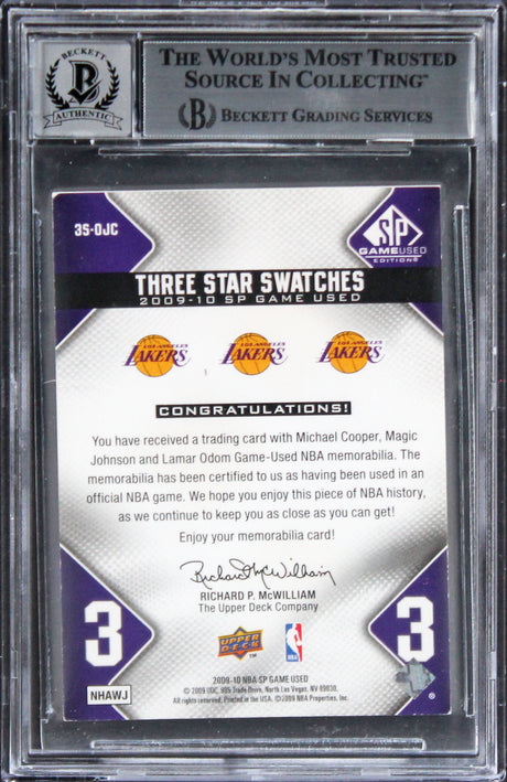 Lakers (3) Johnson, Cooper & Odom Signed 2009 SP GU #3SOJC Card Auto 10 BAS Slab