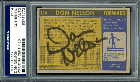 Very low stock (1 unit)$79Unit price /UnavailableDon Nelson Autographed 1971-72 Topps Card #114 Boston Celtics (Signed On Back) PSA/DNA #83717773