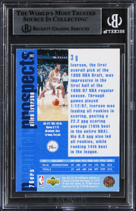 76ers Allen Iverson Authentic Signed 1996 SP #141 Rookie Card BAS Slabbed