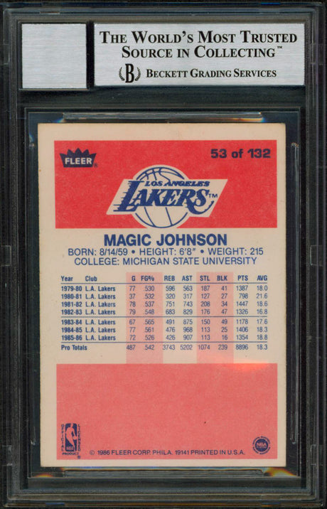 Lakers Magic Johnson Signed 1986 Fleer #53 Card Auto Graded Gem 10! BAS Slabbed