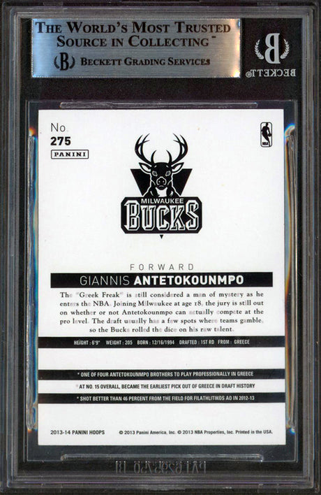 Bucks Giannis Antetokounmpo Signed 2013-14 Hoops #275 Rookie Card BAS Slab