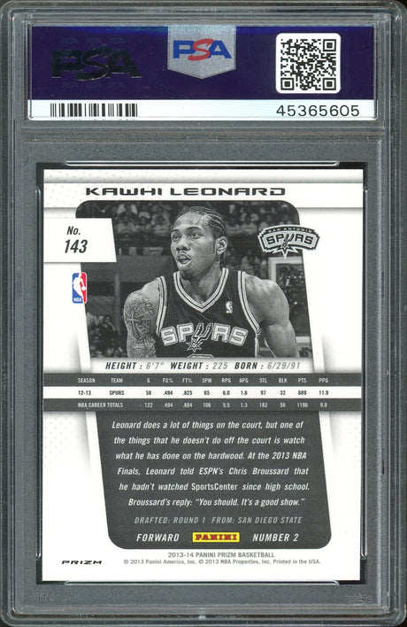 Spurs Kawhi Leonard 2013 Panini Prizm #143 Rookie Card Gem Mint 10! PSA Slabbed