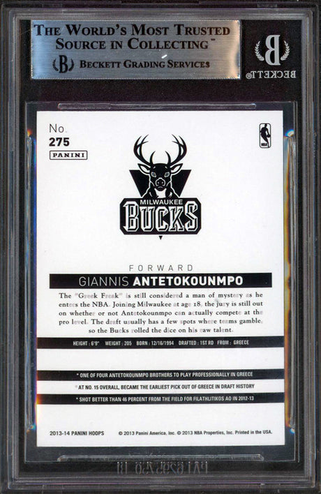Bucks Giannis Antetokounmpo Signed 2013-14 Hoops #275 Rookie Card BAS Slab