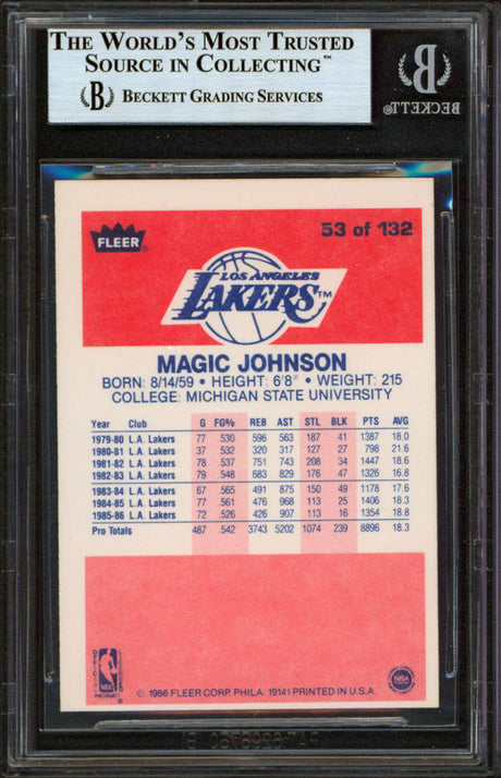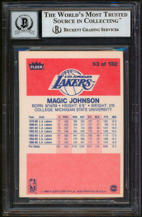 Lakers Magic Johnson Authentic Signed 1986 Fleer #53 Card BAS Slabbed
