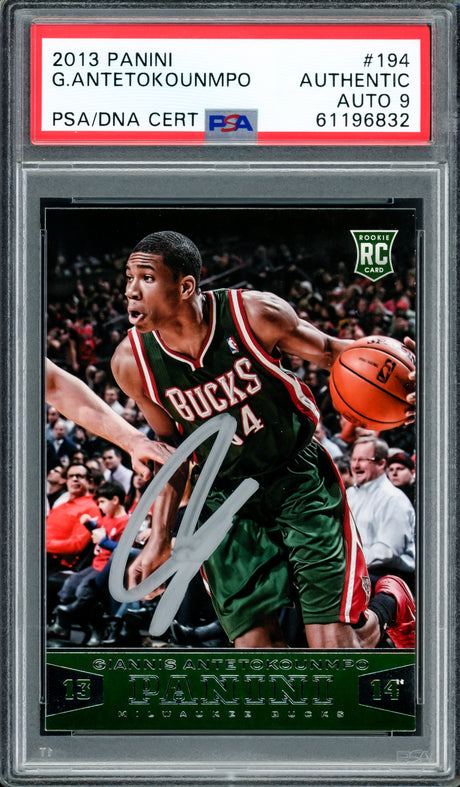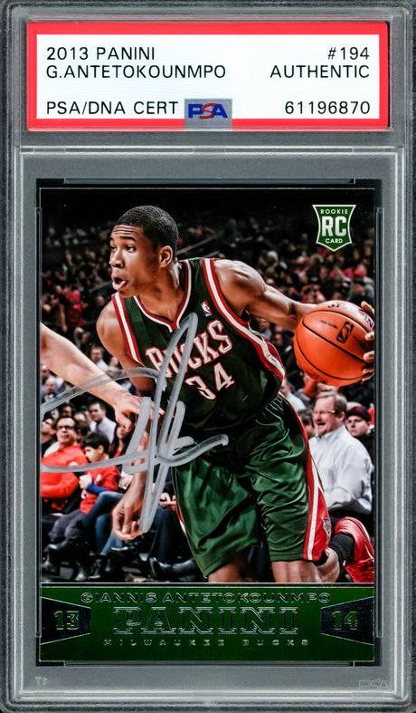 Giannis Antetokounmpo Autographed 2013 Panini Rookie Card #194 Milwaukee Bucks PSA/DNA #61196870