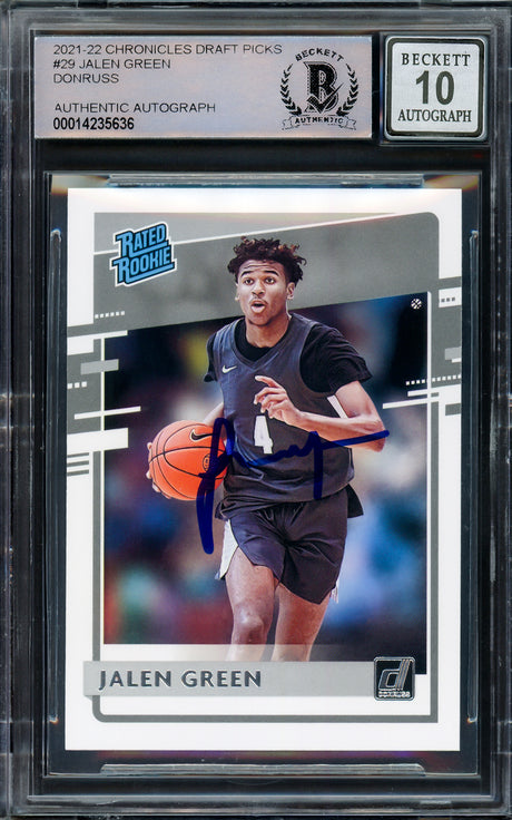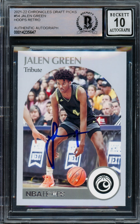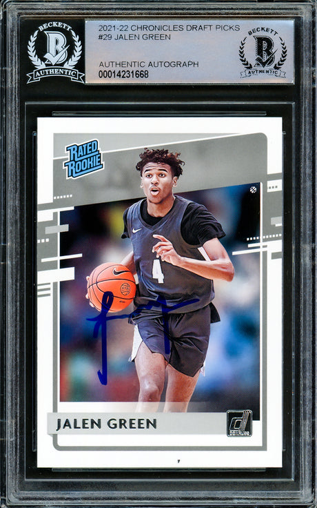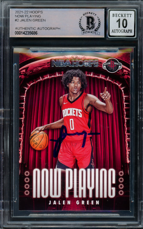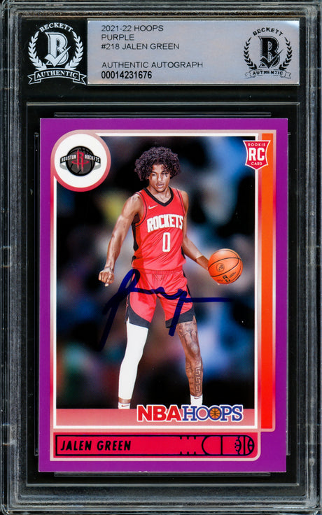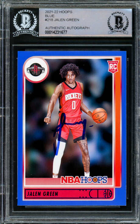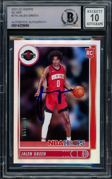 Jalen Green Autographed 2021-22 NBA Hoops Rookie Card #218 Houston Rockets Beckett BAS Stock #206624