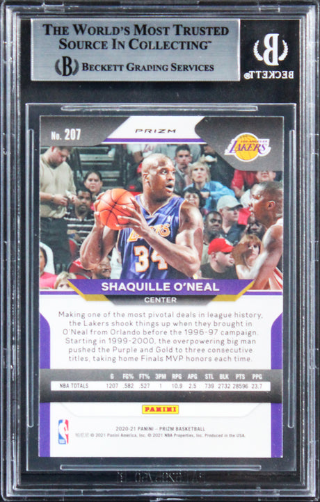 Lakers Shaquille O'Neal Signed 2020 Panini Prizm Purple Wave #207 Card BAS Slab