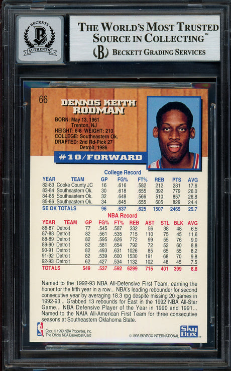 Very low stock (2 units)$89Unit price /UnavailableDennis Rodman Autographed 1992-93 Skybox Card Detroit Pistons No Card Number Beckett BAS #12518287