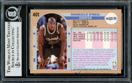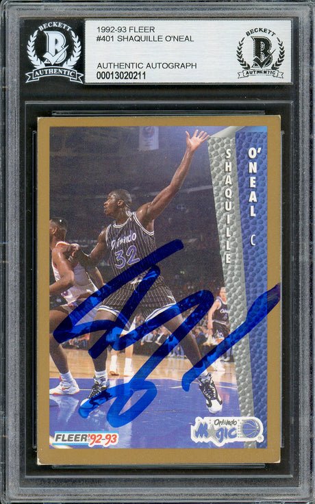 Shaquille Shaq O'Neal Autographed 1992-93 Fleer Rookie Card #401 Orlando Magic Beckett BAS #13020211