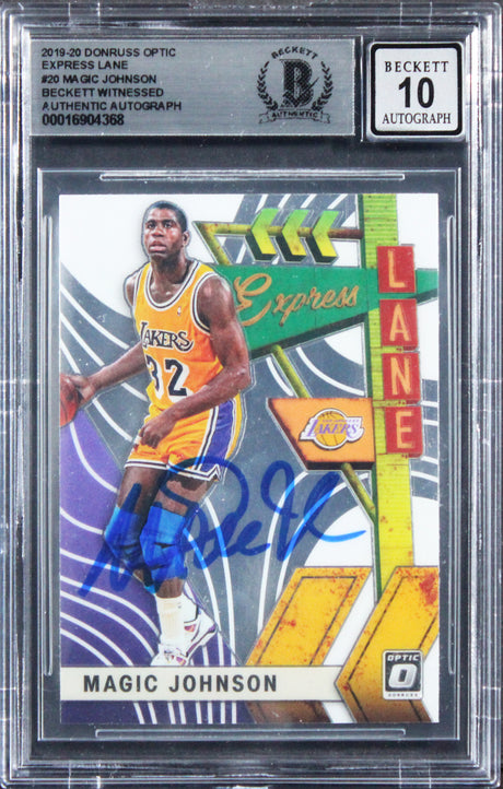 Magic Johnson Signed 2019 Donruss Optic #20 Card Auto Grade Gem 10! BAS Slabbed