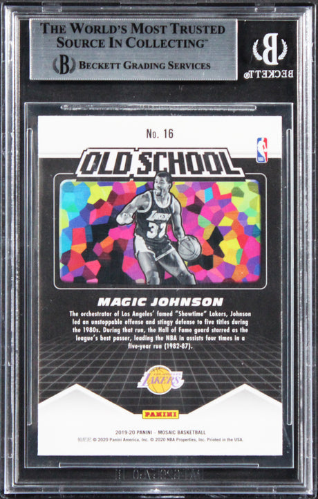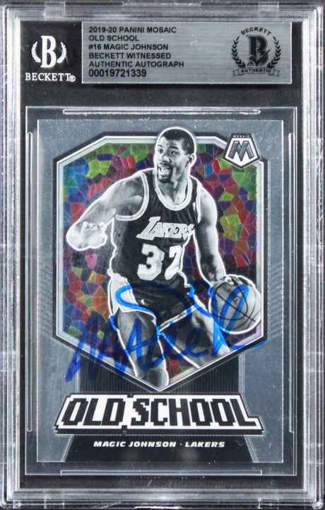 Lakers Magic Johnson Signed 2019 Panini Mosaic Old School #16 Card BAS Slabbed
