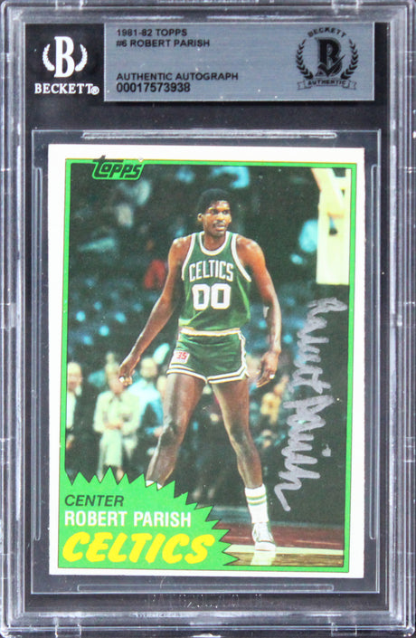 Very low stock (1 unit)$259Unit price /Unavailable Celtics Robert Parrish Authentic Signed 1981 Topps #6 Card BAS Slabbed