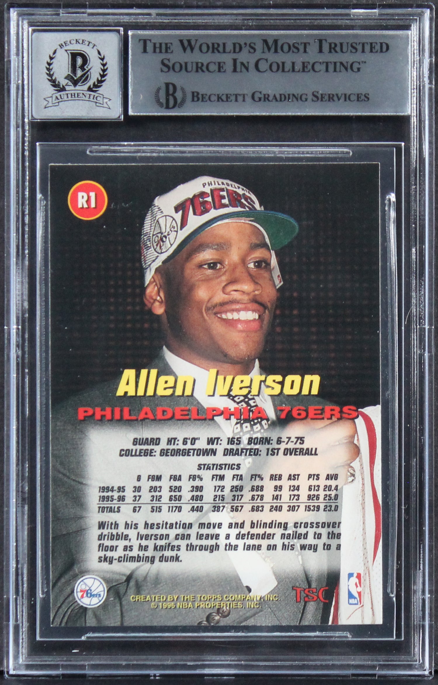 76ers Allen Iverson Signed 1996 Stadium Club Rookies 1 #R1 Card Auto 10 BAS Slab is backordered and will ship as soon as it is back in stock.