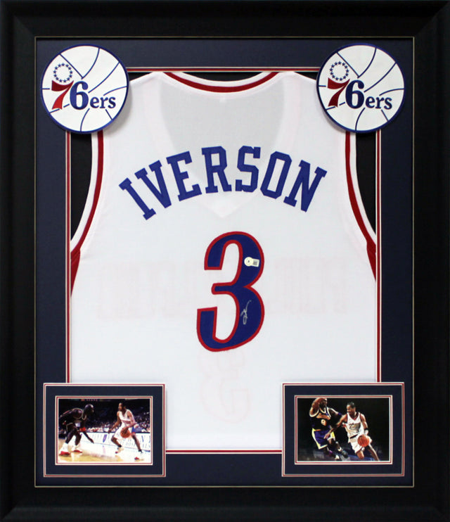 Own a piece of Philadelphia 76ers history with this Autographed White Pro Style Framed Jersey, personally signed by Allen Iverson — one of the most electrifying players in NBA history. A true collector’s item, this professionally framed jersey is authenticated by Beckett Authentication Services (BAS), ensuring its authenticity and long-term value.