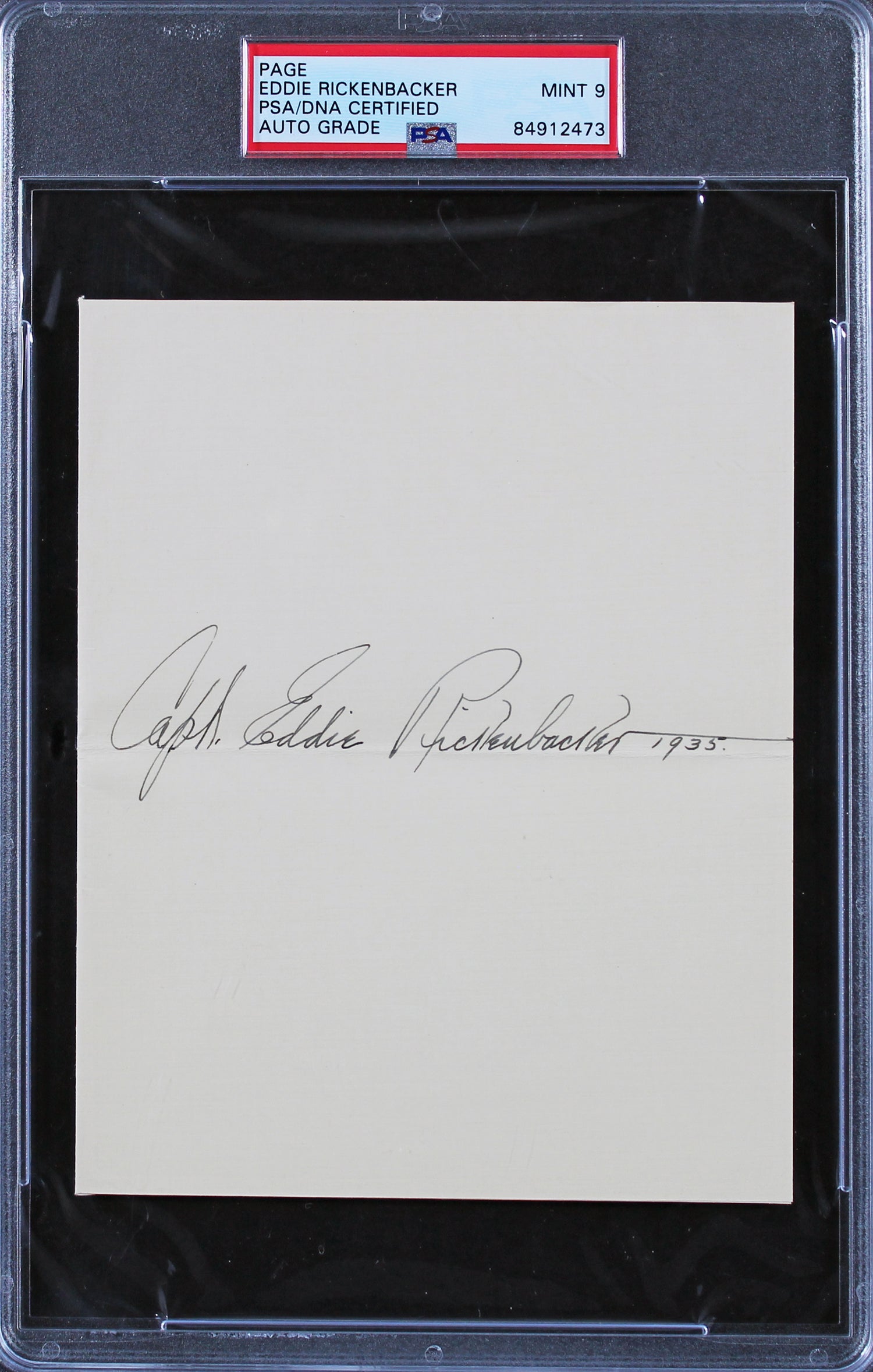 Eddie Rickenbacker "Capt, 1935" Signed 5x6.25 Album Page Auto 9! PSA Slabbed is backordered and will ship as soon as it is back in stock.