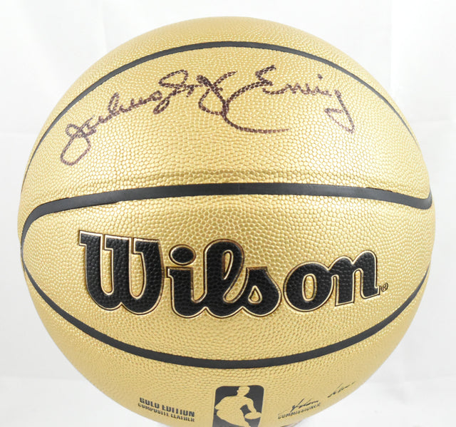 Own a piece of basketball history with this hand-signed Julius Erving NBA Wilson Gold Edition Basketball. A must-have for any serious collector or passionate fan, this autographed basketball pays tribute to one of the game's all-time greats—Dr. J himself. Revered for revolutionizing the sport with his soaring dunks and unmatched style, Julius Erving left an unparalleled legacy in the NBA and remains a beloved figure in basketball culture. This exclusive item is authenticated and ready to elevate your collection or gift someone a legendary piece of sports history.