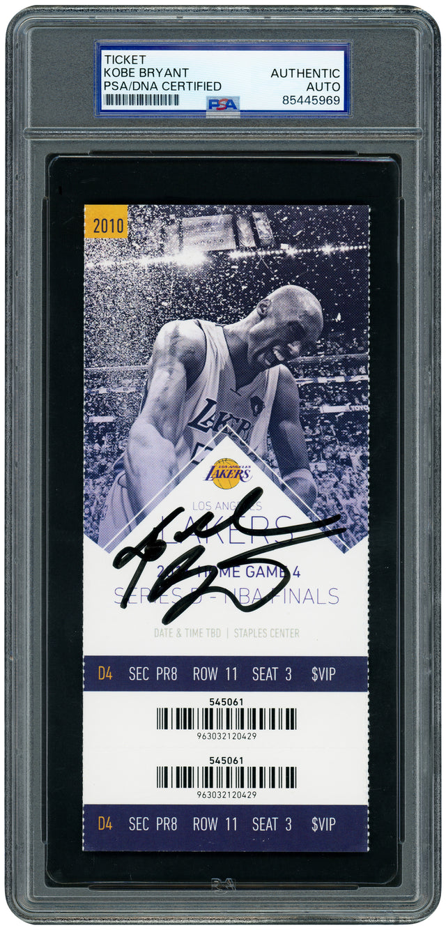 Own a piece of NBA history with this 2010 NBA Finals Game 4 Full Ticket hand signed by Kobe Bryant—a legendary collectible from an unforgettable series. Game 4 of the 2010 NBA Finals marked a pivotal moment in the showdown between the Los Angeles Lakers and the Boston Celtics, and this full ticket captures the intensity of that night. Kobe Bryant’s signature cements this item as a must-have for serious collectors and Lakers fans alike. Authenticated and encapsulated by the industry's leading experts, this ticket is more than memorabilia—it's a timeless tribute to greatness.