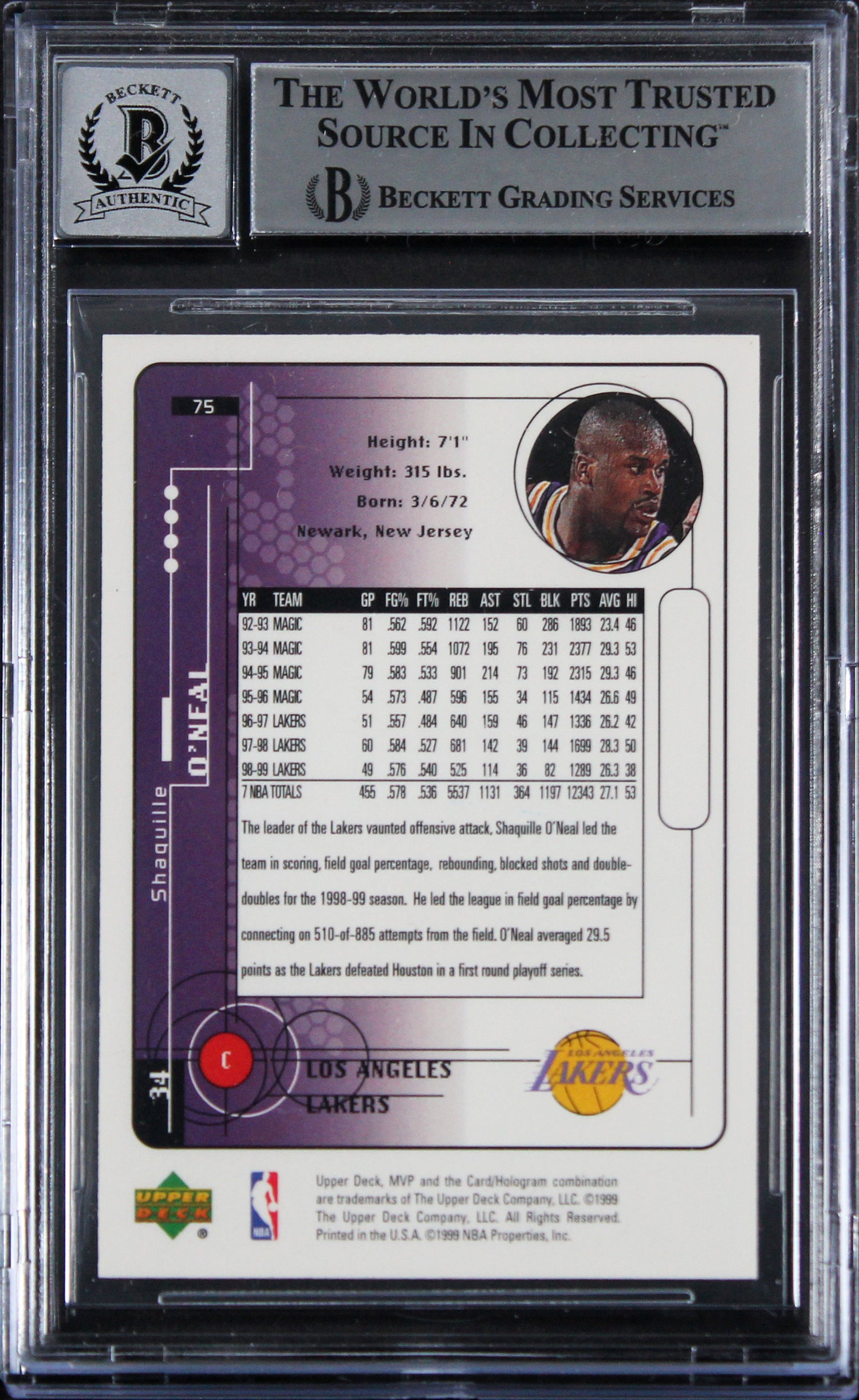 Lakers Shaquille O'Neal Signed 1999 Upper Deck MVP #75 Card Auto 10! BAS Slabbed
