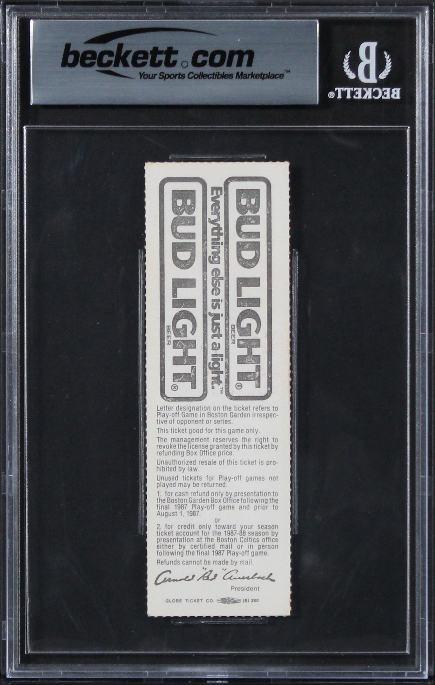This authenticated and slabbed ticket stub is a must-have for Lakers fans, NBA historians, and serious collectors. 100% Authentic, with verification available on Beckett Authentication Services’ website.
