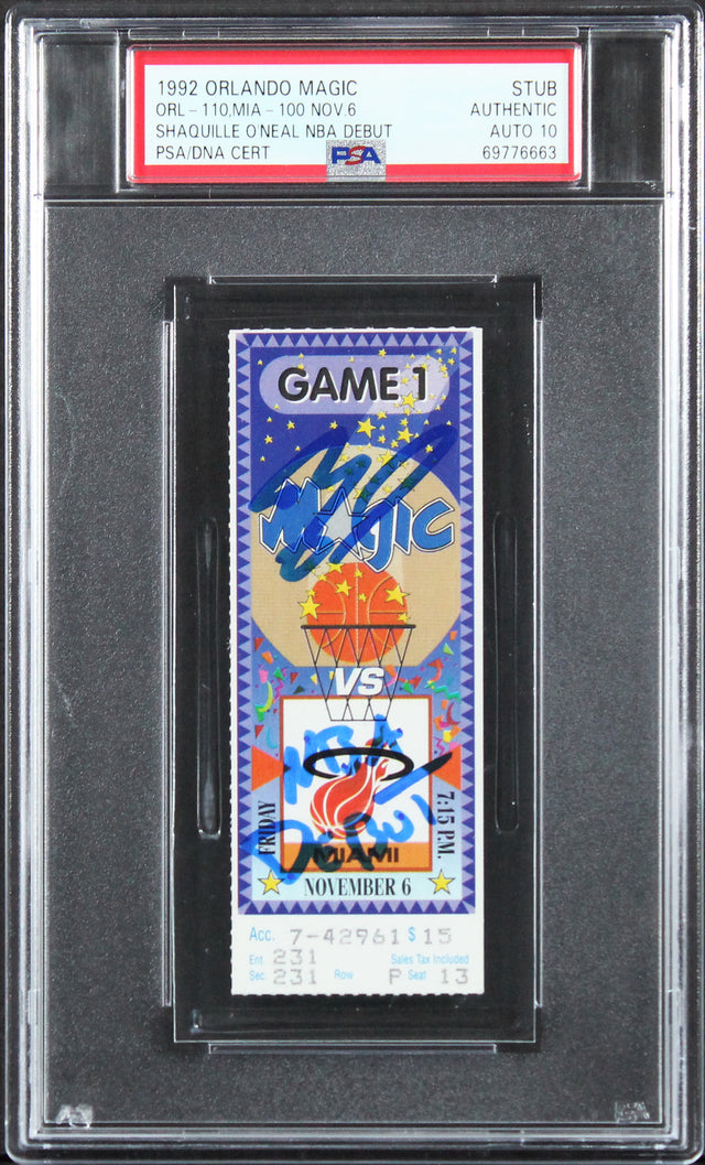 Magic Shaquille O'Neal "NBA Debut" Signed 1992 Ticket Stub Auto 10! PSA Slabbed